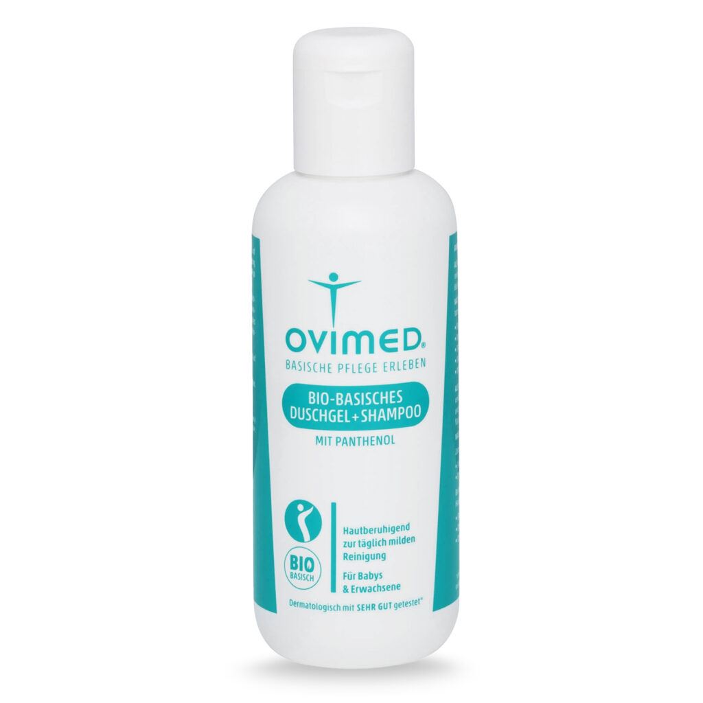 Le gel douche et shampooing biologique alcalin OVIMED a reçu une mention "très bien" aux tests allergologiques et dermatologiques.